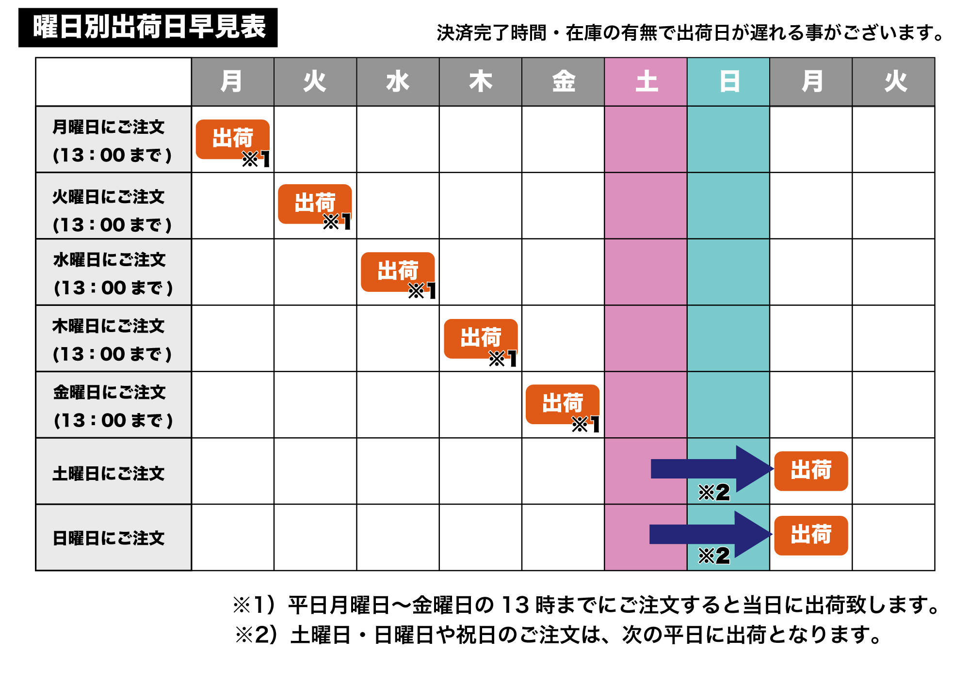 曜日別出荷早見表